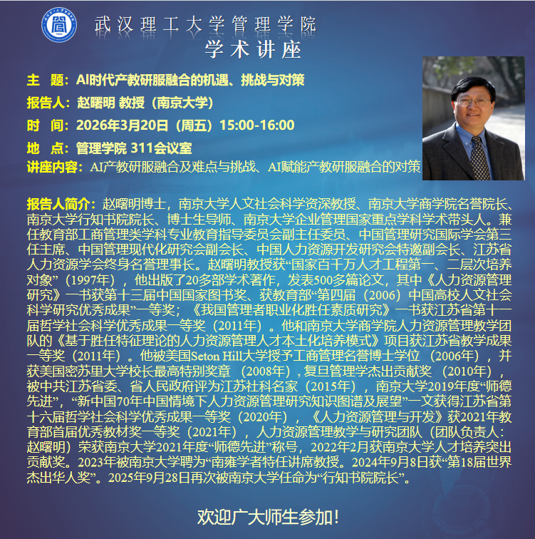 地址:武汉市洪山区珞狮路122号 武汉理工大学管理学院 邮编:430070 Copyright © 武汉理工大学管理学院 All Rights Reserved