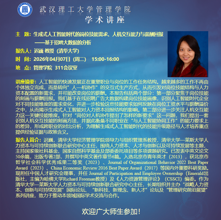 地址:武汉市洪山区珞狮路122号 武汉理工大学管理学院 邮编:430070 Copyright © 武汉理工大学管理学院 All Rights Reserved