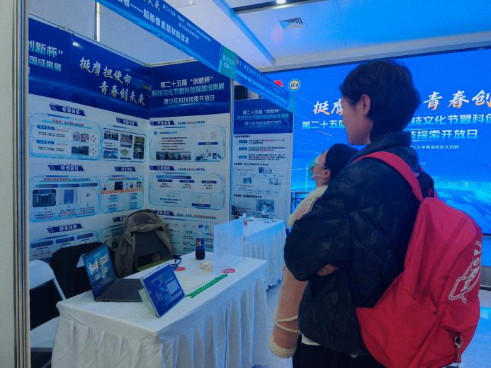上午9时,团支部成员抵达活动现场,正值开幕式暨双青论坛启动。在全天开放的展示区,86件入围决赛的作品涵盖人工智能、电子信息、新材料等多个领域:智能机器人的精准操作、生态修复装置的实景演示、航海导航系统的技术解析,让团员们直观感受到科技创新的实践价值与蓬勃活力。