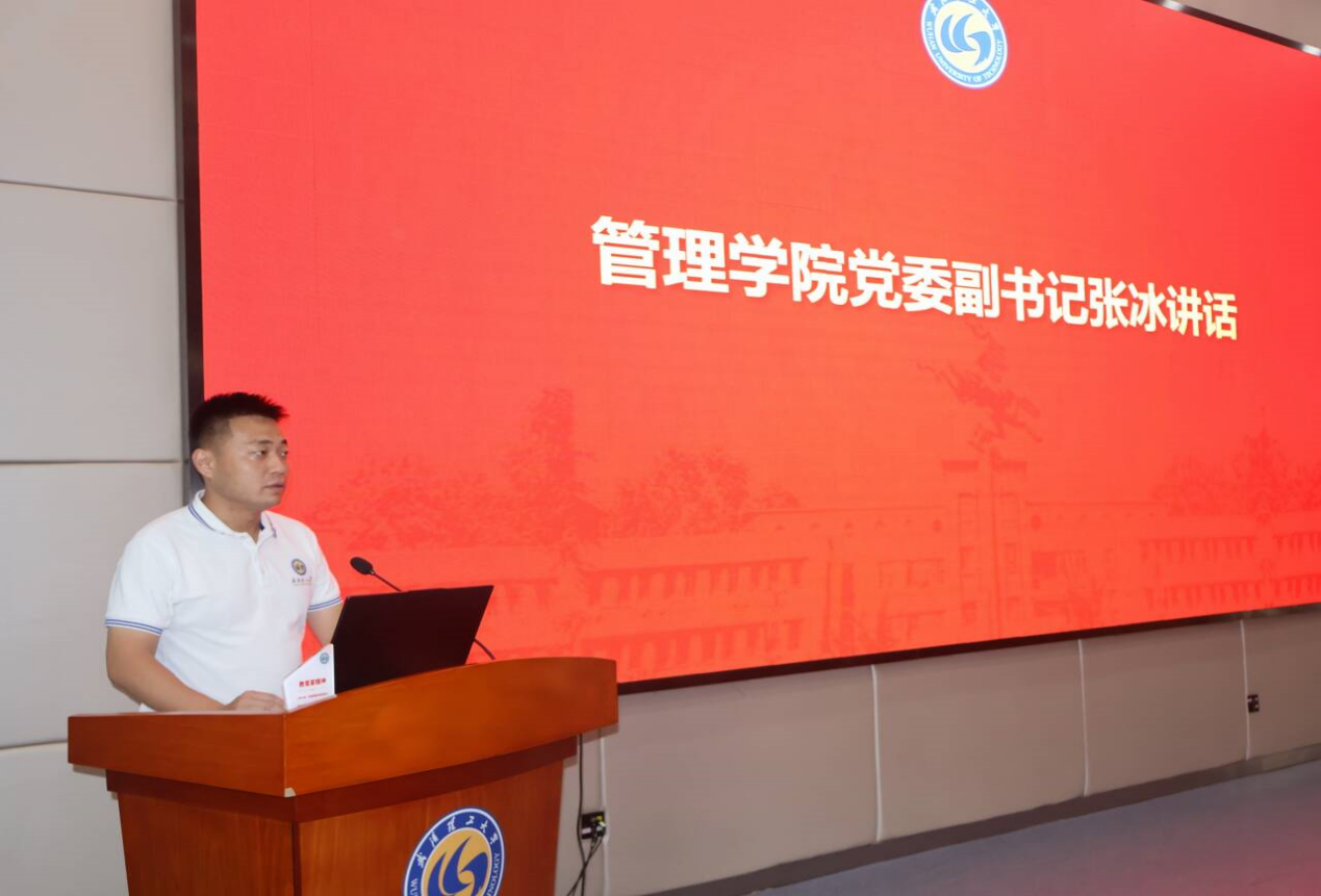 大会伊始,国歌响彻会场,全体与会人员肃立齐唱。大会第一项议程,张冰书记登台致辞,他代表管理学院对大会召开表示热烈祝贺,向关心支持学院学生组织建设的上级组织、师生及全体代表致以感谢与问候。张冰书记指出,学代会、研代会是青年学子发扬民主、建言献策的重要平台。结合当前学习贯彻党的二十届三中全会和全国教育大会精神的背景,他围绕“把握学生会组织职责使命、增强组织吸引力凝聚力、学生干部率先垂范树表率”三方面提出要求:强调学生会组织要保持政治性、先进性、群众性,直面工作短板,以改革创新精神解决问题;号召学生干部牢记嘱托,心系同学、服务同学,以实际行动在中国式现代化建设中挺膺担当。