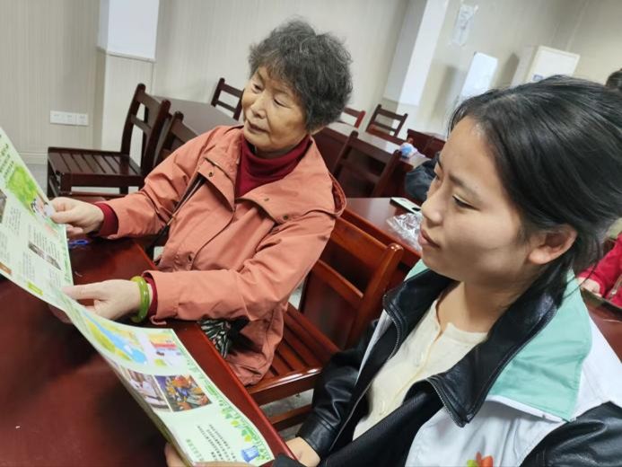 活动现场,青年志愿者们化身耐心细致的“环保讲解师”,通过精心设计的环节和通俗易懂的语言为老人们带来了一场别开生面的环保课程。他们不仅发放了图文并茂的宣传折页,还结合生活实例为老人们讲解垃圾分类基本知识。考虑到老年群体的认知特点,青年志愿者们采取了“1对1”的讲解课程,这不仅有效提升了老年人的接受力和理解力,还成就了一场青年与长者的温情对话。