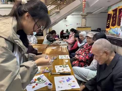 10月18日星期六上午,管理学院团委志工部组织的"筑梦夕阳"志愿服务活动在武汉康德养老院如期开展。志愿者们为院内的老人们带来了一场别开生面的手工植物拓染体验活动,以富有创意的艺术形式丰富了老人们的精神文化生活。