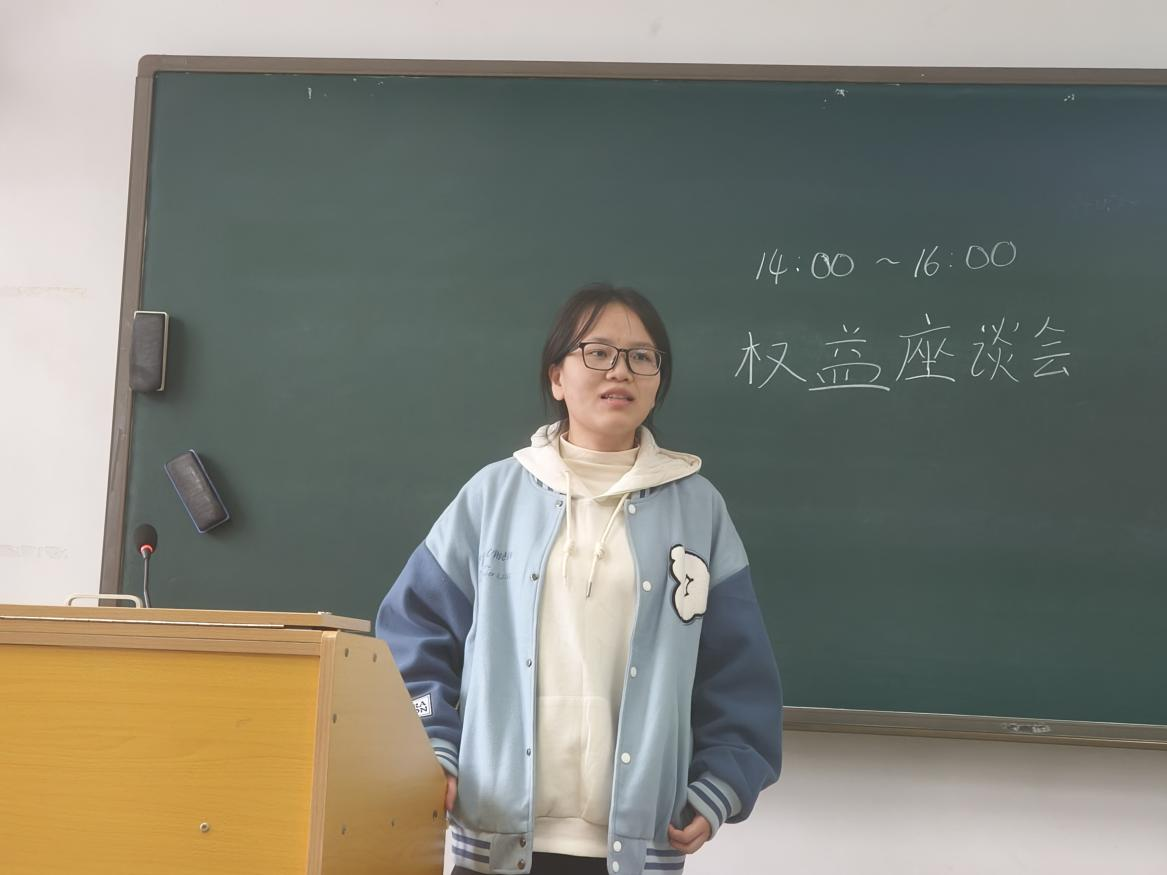 会议伊始,权益部成员蒙欣妍同学围绕“部门概况、成就展示、委员职能、星级寝室评选及后勤支持”五大板块进行了深入阐述。管理学院学生会权益部自成立以来,始终坚守“传达同学之声,守护同学权益”的核心理念。至今,权益部已成功举办包括“三八”妇女节庆祝活动、趣味竞技运动会、3·15消费者权益保护日等在内的一系列特色活动,有效满足了同学们的多元需求。