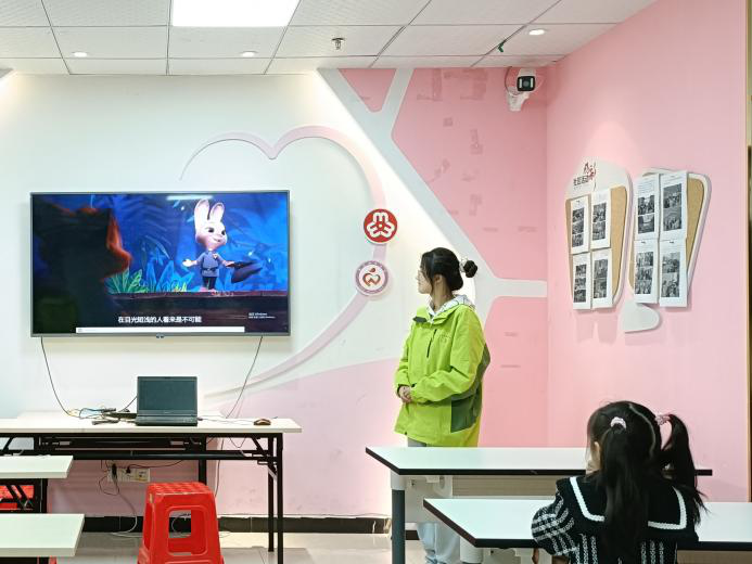 在课堂上,志愿者们通过通俗案例解释“独立思考”的涵义,教会孩子们“用自己的眼睛看世界,用自己的大脑想问题”。在快问快答的游戏环节,志愿者提出开放性问题,激发孩子们跳出固定思维,提出多元答案。最后“梦想家的故事”环节,志愿者给孩子讲述谷爱凌的对梦想的坚持、贝多芬对命运的抗争等,潜移默化地给孩子们传递了勇于追梦、不畏挑战的价值观。课后,志愿者们还提供了多种监督和激励方法,帮助孩子们在日常生活中持续进步,不断接近梦想。