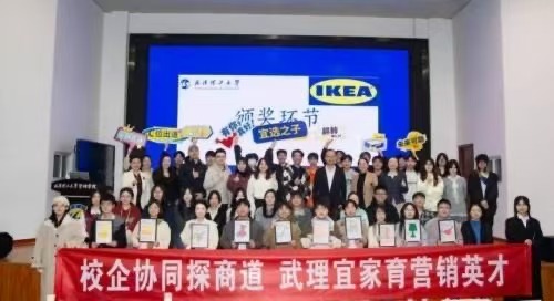 2025年11月14日,由武汉理工大学管理学院市场营销系主办、市场营销协会承办的“校企协同探商道 武理宜家育营销英才”主题项目汇报会在管理学院报告厅成功举办。管理学院副院长刘军、市场营销系系主任汪秀婷、市场营销系吴小艳、冯军、程琦、陈云、张庆华等教师代表,宜家家居设计部经理阮军、全屋设计部经理王彬、员工与文化部经理罗怡、员工与文化部专员王玲、室内设计部员工袁伟彭等管理层及员工代表,与2023级营销专业学生共同参与,见证这场校企深度融合的实践盛宴。