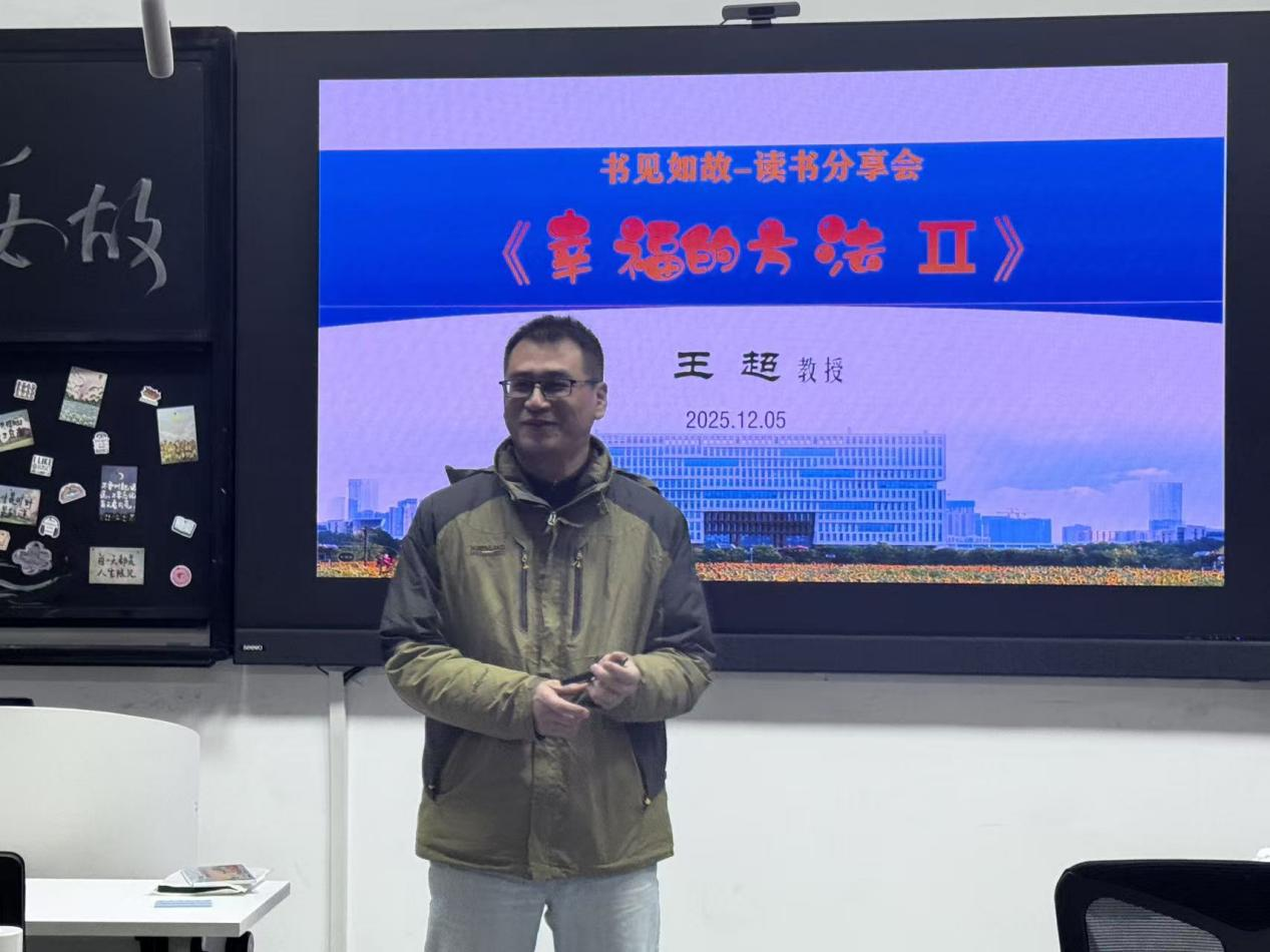 活动后期,管理学院副院长王超教授带来专业分享。他以《幸福的方法》为核心,结合自身经验与教学研究,从“为什么追求幸福”“幸福的本质是什么”“如何获得幸福”三个维度展开解读。王超教授指出,真正的幸福是“快乐享受追求有意义目标的过程”,而非单纯的结果达成;他还结合具体事例,强调外在因素带来的快乐往往短暂,唯有调整内在认知、解读方式,才能让幸福持续生长。此外,他还推荐同学们阅读《哈佛大学幸福课》,鼓励大家在日常生活中践行积极心理学,在奋斗中感受幸福。
