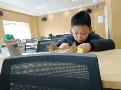 此外,活动还创新引入科技元素,通过“魔法光学——揭秘VR技术”环节,志愿者向孩子们讲解虚拟现实技术(VR)的应用,并指导大家动手制作VR眼镜。从拆解包装到组装镜片,孩子们一步步完成制作,沉浸式体验虚拟世界,感受科技职业的魅力。这一环节不仅拓宽了职业视野,更激发了孩子们对新兴行业的兴趣。
