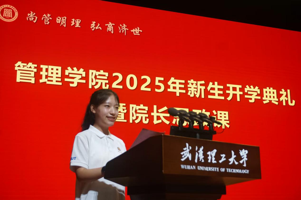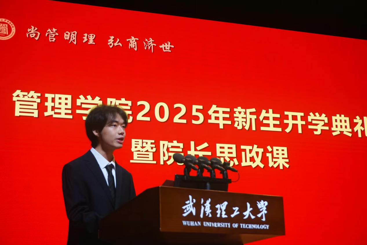 2025级本科新生代表文昊玉同学真挚地分享初入校园的感悟,号召全体新生深思熟虑未来蓝图,明智选择人生路径,将管理学院的精神内涵与理工科坚实的知识根基融为一体,筑梦前行。他鼓励同学们怀抱青春的热情与冲劲,以满腔赤诚绘就人生的壮丽篇章,珍惜时光,敢拼敢闯,不负伟大时代的重托。