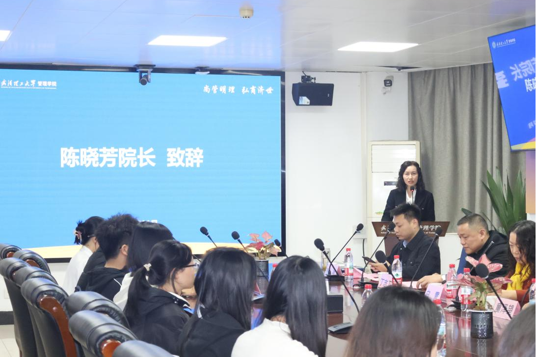 11月28日下午,武汉理工大学2024-2025学年“金坤奖助学金”颁奖仪式在学院311会议室举行。武汉理工大学“金坤奖助学金”捐赠人、管理学院校外生涯导师、工商管理891班校友周金坤,工商管理891班校友白蒙、朱帮军,管理学院院长陈晓芳,管理学院党委书记童泽望,学校校友联络区域(行业)中心主任高维义,学校社会合作处副处长丁志卫等领导嘉宾出席仪式,各年级辅导员及获奖受助学生共同参与,管理学院党委副书记张冰主持颁奖仪式。