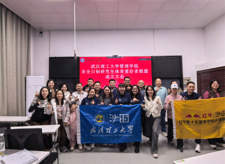 2026年1月1日下午,武汉理工大学管理学院非全日制研究生体育爱好者联盟成立大会在管理学院107教室顺利举行。本次大会采用“线上+线下”相结合形式,管理学院副院长王超、副书记张冰、专业学位办主任苏华和MBA中心主任牟仁艳、副主任殷向洲等学院领导出席大会,武汉理工管理学院24级MBA深圳班、集中班、柳州班、周末班等异地学子也通过腾讯会议云端参会,共同见证联盟成立的重要时刻,大会由24级MBA深圳班班长姜放主持。