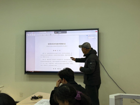 会上,胡浩老师对《管理学院本科教学管理办法》进行了系统解读。胡老师围绕文件制定背景、总体框架及核心内容展开介绍,重点讲解了课程考核方式、考试命题与评阅规范、过程性考核比例要求、成绩管理以及教学资料归档等关键环节,帮助教师全面、准确理解文件精神与具体执行要求。胡老师指出,该办法对课程考核的公平性、规范性和过程管理提出了更为明确的要求,是保障教学质量和促进教学改进的重要制度依据。
